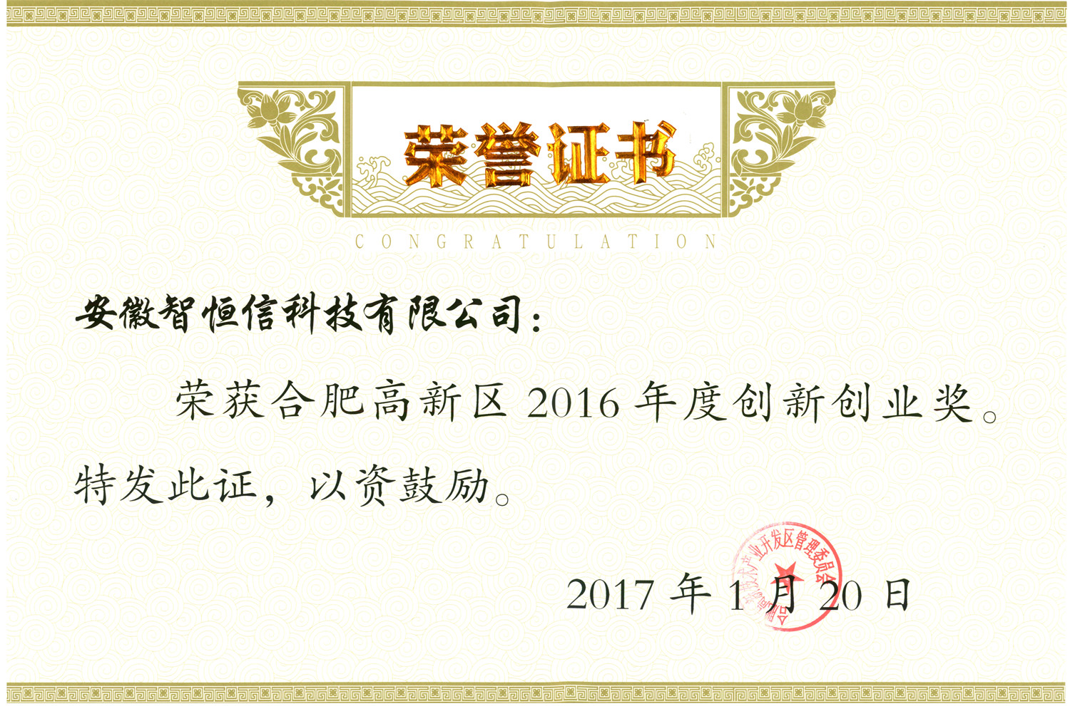 合肥高新區(qū)2016年度創(chuàng)新創(chuàng)業(yè)獎
